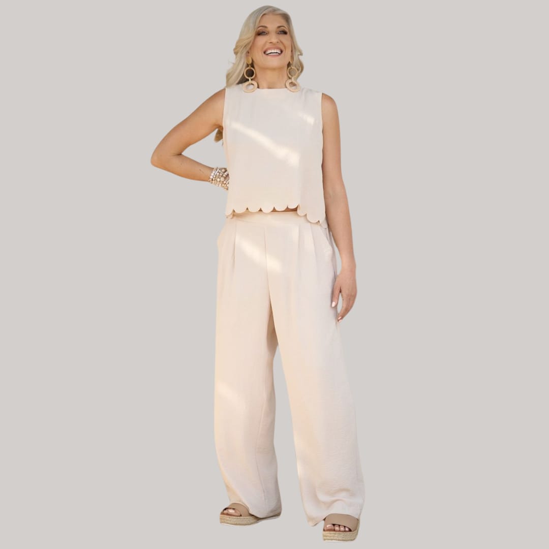 Tosca Linen Palazzo Pant - MADE IN ITALY - Stone