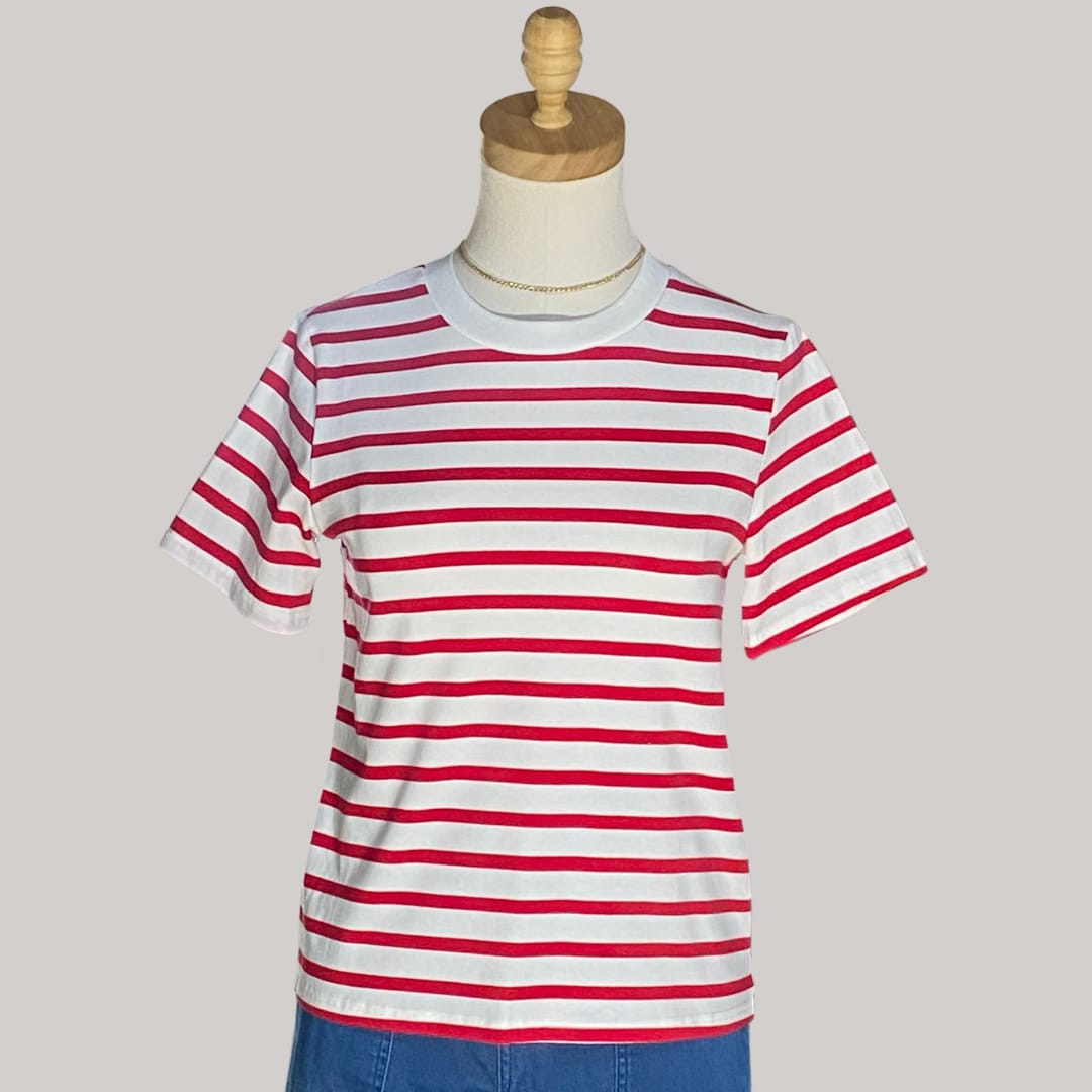An classic that never fades! This classic red and white stripe pattern gives a nod to nautical-inspired fashion, while the crew neckline and relaxed fit make it a versatile staple you'll reach for again and again. Whether you're dressing it up or keeping it casual, this tee is made to move with you.